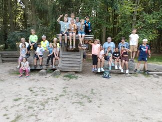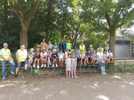 Wie im Fluge verging die Zeit bis 17 Uhr. Schnell noch ein Foto mit den Kindern und den sieben Betreuern. Dann stiegen alle auf ihre Fahrräder, um pünktlich um 18 Uhr zurück zu sein.