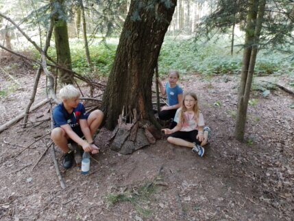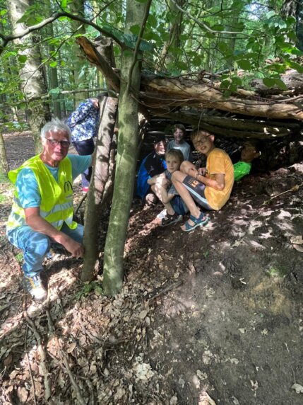 Dann wurde gespielt. Es bildeten sich Gruppen. Eine baute eine Holzhütte, eine andere kreierte aus gefundenen Ästen und Holzstückchen ein Kunst. Zwischendurch waren die Spielgeräte interessant.